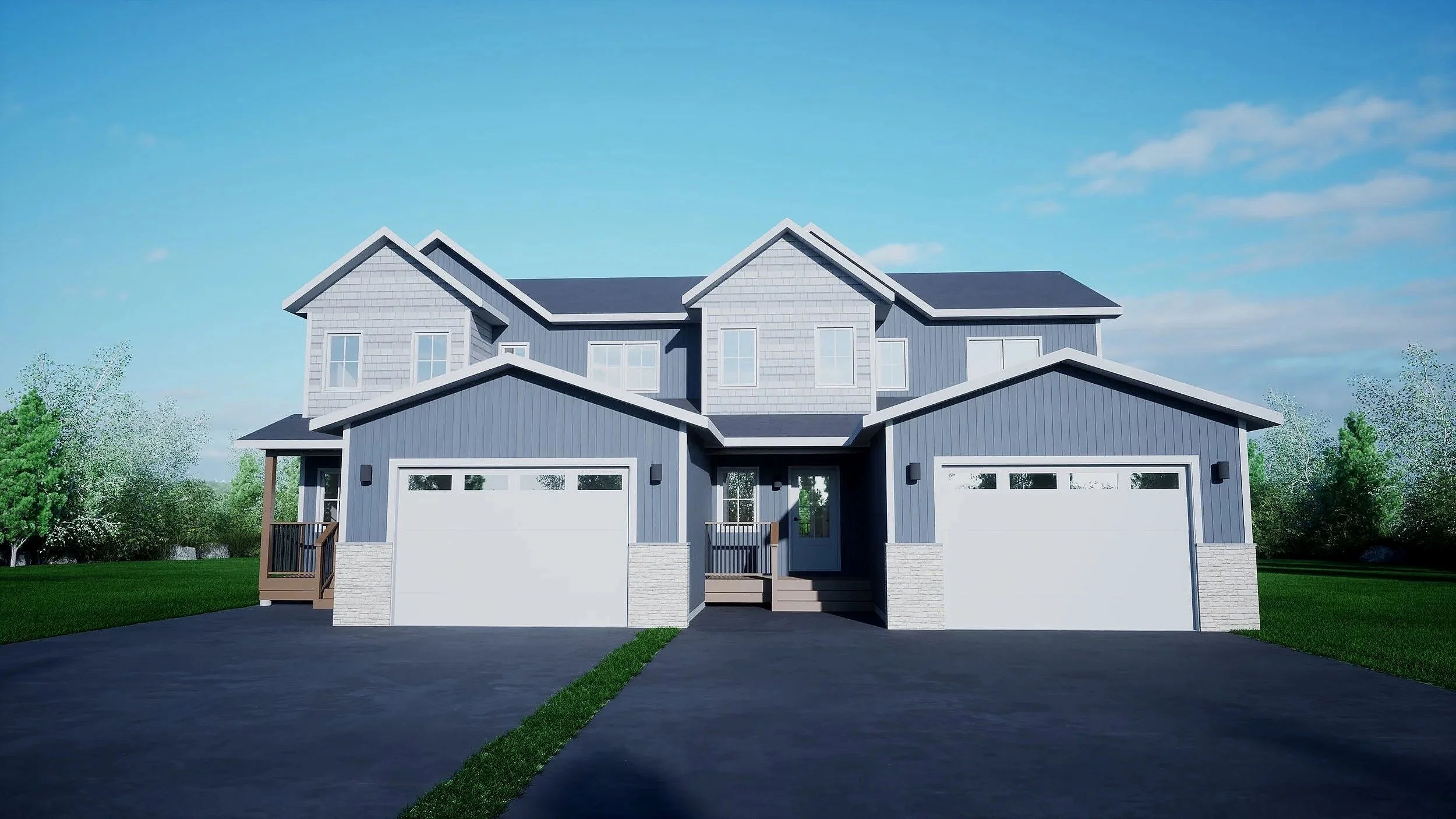 Two car driveway with oversized single car garage